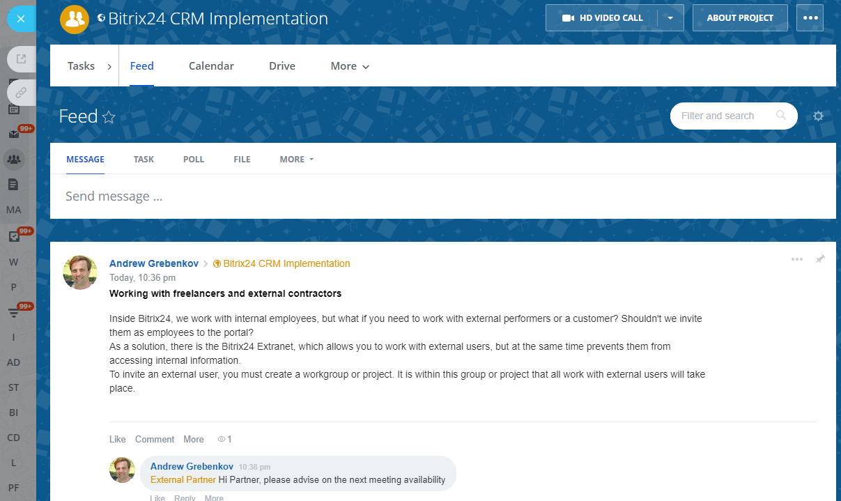 Inside Bitrix24, we work with internal employees, but what if you need to work with external performers or a customer?