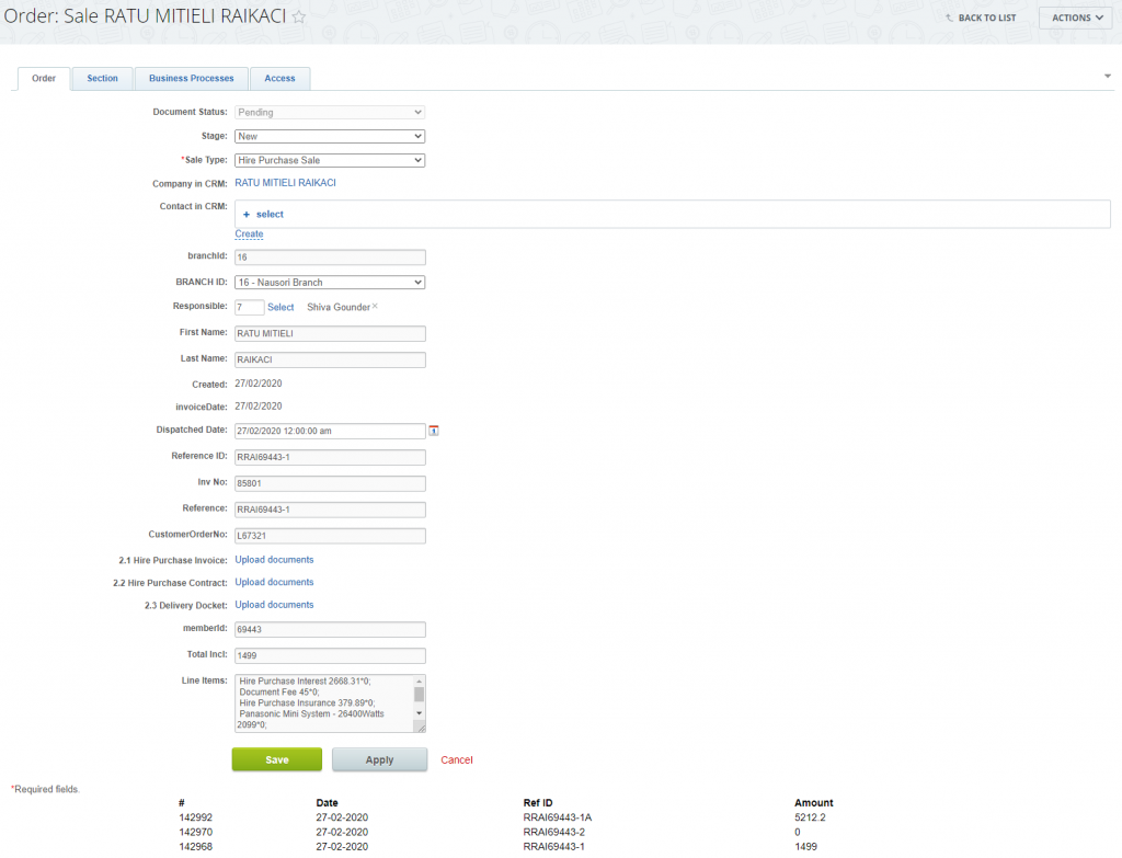 Sales Order view: