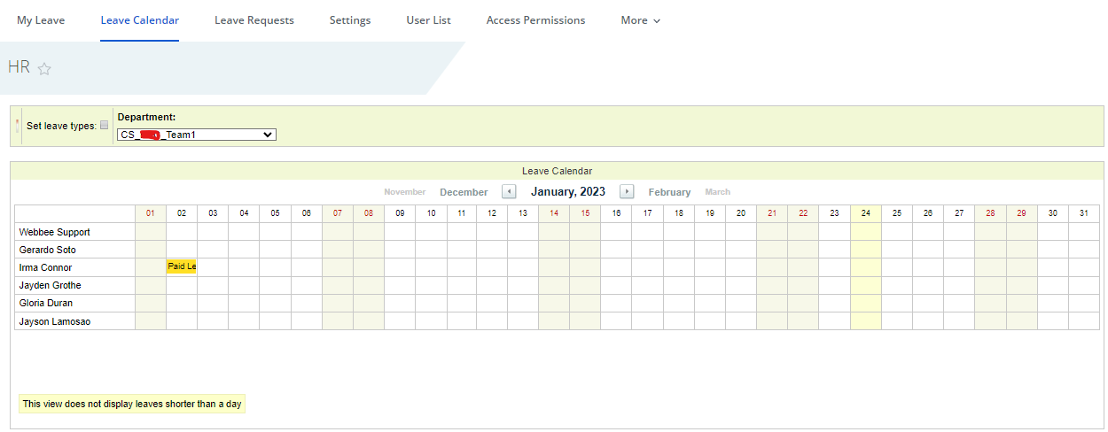 * Blackout periods can be set for a department. During this period no one can request leave.